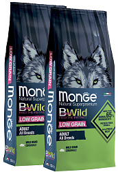 BWild Dog Feed the Instinct - это инновационная линейка кормов для собак, созданная компанией Monge для того, чтобы кормить питомцев так, как им "предназначено природой". В составах кормов серии BWild Dog увеличено количество специально отобранного свежего мяса.