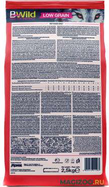 Каждый корм линии BWild Dog содержит более 65 % мяса, при этом в состав не добавлен картофель и ограничено количество злаков.