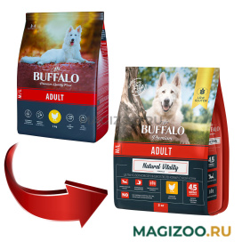 Полнорационный сухой корм Mr. Buffalo с курицей для взрослых собак. Оптимальное содержание белков, жиров и углеводов делает этот корм подходящим для собак средних и крупных пород.