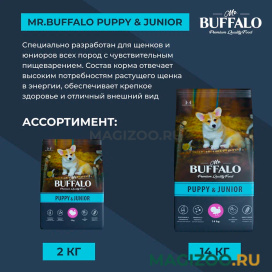 Полнорационный сухой корм Mr. Buffalo с индейкой для щенков и юниоров всех пород с чувствительным пищеварением.