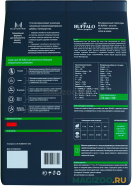 Полнорационный сухой корм Mr. Buffalo разработан с учётом потребностей стерилизованных кошек и кастрированных котов, включает все необходимые питательные вещества для поддержания жизненных сил, здоровья мочевыделительной системы, поддержания оптимального веса и мышечной массы питомца.