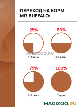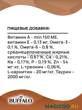 Информация о составе и ингредиентах, цветовом решении, технических и иных характеристиках, стране-изготовителе, внешнем виде и комплекте поставки товара носит справочный характер и основана на последних доступных к моменту публикации сведениях. Доставка данного товара осуществляется во все регионы РФ.Сухие корма Mr. Buffalo для собак и кошек изготовлены на дочернем предприятии транснационального производственного концерна Cargill, на заводе Провими (ООО «Провими») в городе Клину (МО), под контролем Neoterica GmbH (Эссен, Германия).