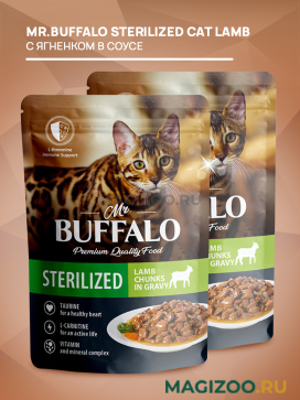 Полнорационный влажный корм Mr.Buffalo с ягненком в соусе для взрослых кастрированных котов и стерилизованных кошек.