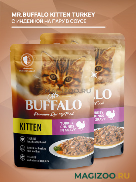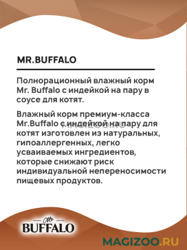 Полнорационный влажный корм Mr. Buffalo с индейкой на пару в соусе для котят.