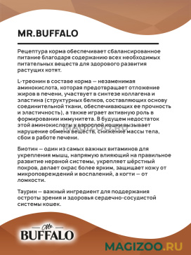 Паучи отлично дополнят полнорационный сухой корм Mr. Buffalo и внесут разнообразие в питание вашей кошки.