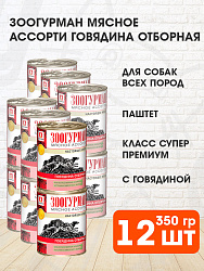 Полноценный консервированный корм для взрослых собак всех пород с отборной говядиной.