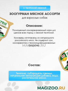 Вся продукция ЗООГУРМАН не содержит сои, консервантов и ароматизаторов. В этом нет необходимости, так как нет ничего вкуснее натурального мяса!