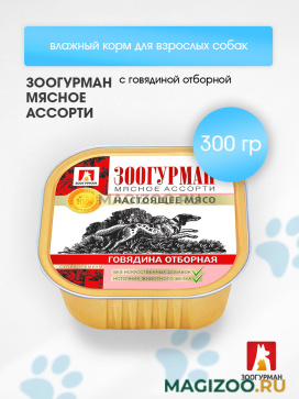 Полноценный консервированный корм для взрослых собак всех пород с отборной говядиной.