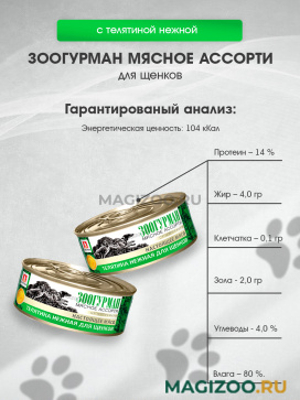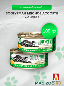 Полноценный консервированный корм для щенков всех пород с нежной телятиной.