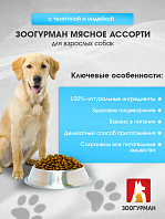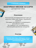 Влажный корм (консервы) ЗООГУРМАН МЯСНОЕ АССОРТИ для взрослых собак с телятиной и индейкой (100 гр)