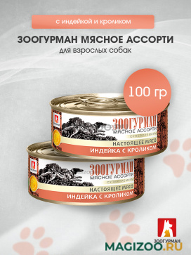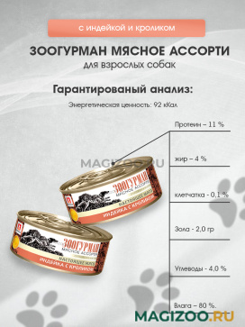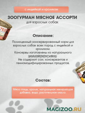 Полноценный консервированный корм для взрослых собак всех пород с индейкой и кроликом.