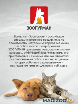 Компания «Зоогурман» - российское специализированное предприятие по производству натуральных кормов для кошек и собак класса супер-премиум.