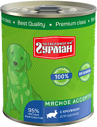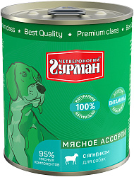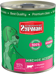 Консервы Четвероногий Гурман МЯСНОЕ АССОРТИ выпускаются уже более 10 лет, и спрос на них только растёт. Это корм, в составе которого содержится 95% мясных компонентов исключительно высшего качества.