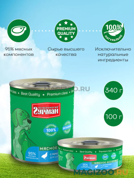 Консервы Четвероногий Гурман МЯСНОЕ АССОРТИ выпускаются уже более 10 лет, и спрос на них только растёт. Это корм, в составе которого содержится 95% мясных компонентов исключительно высшего качества.