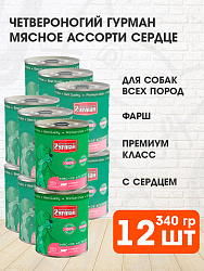 Консервы Четвероногий Гурман МЯСНОЕ АССОРТИ выпускаются уже более 10 лет, и спрос на них только растёт. Это корм, в составе которого содержится 95% мясных компонентов исключительно высшего качества. Рецептуры корма богаты по ингредиентам - мясо и всевозможные субпродукты обеспечивают лакомый вкус и притягательный аромат, высокую питательность, а также насыщенный комплекс витаминов и минералов. Не содержат злаков, бобовых и овощей, а также синтетических витаминно-минеральных комплексов.