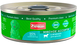 Консервы для собак Четвероногий Гурман для Собак Мясное Ассорти с Говядиной можно назвать кормом класса суперпремиум. Консервированный корм, который производится по новейшей технологии на современном оборудовании, что позволяет строго следить за его качеством. Специальная щадящая технология обработки компонентов позволяет сохранить максимальное количество витаминов, микроэлементов и питательных веществ, необходимых любой собаке. Корм производится из высококачественного натурального мяса, без добавления сои, ароматизаторов и красителей, имеет отличный вкус и привлекательный аромат. Такие консервы Вы можете давать собаке как отдельно, так и смешивая их с кашей или овощами. Они станут прекрасным и вкусным дополнением к рациону Вашего любимца.