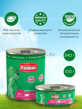 Консервы Четвероногий Гурман МЯСНОЕ АССОРТИ для взрослых собак с языком можно назвать кормом класса суперпремиум.
