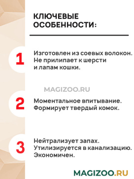 Благодаря волокнистой структуре при попадании жидкости соевые гранулы образуют крепкий комок и надежно запирают запах внутри. Наполнители CAT STEP TOFU нетоксичны, их аккуратные гранулы не пылят и не разлетаются при утилизации.