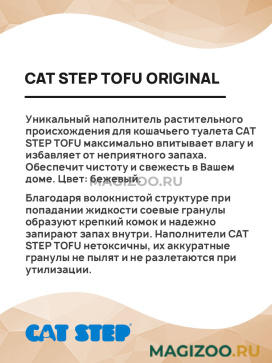 Уникальный наполнитель растительного происхождения для кошачьего туалета CAT STEP TOFU максимально впитывает влагу и избавляет от неприятного запаха. Обеспечит чистоту и свежесть в Вашем доме. Цвет: бежевый.