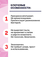 - Не выделяет пыли, не прилипает к лапам и шерсти животного.