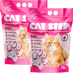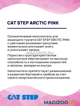 Cиликагелевый наполнитель для кошачьего туалета CAT STEP ARCTIC PINK с цветными розовыми гранулами моментально впитывает влагу и уничтожает запахи.