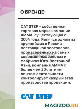 Информация о составе и ингредиентах, цветовом решении, технических и иных характеристиках, стране-изготовителе, внешнем виде и комплекте поставки товара носит справочный характер и основана на последних доступных к моменту публикации сведениях. Доставка данного товара осуществляется во все регионы РФ.Благодаря постоянному совершенствованию линии товаров, продукция CAT STEP предлагает широкий ассортимент наполнителей для взрослых кошек и маленьких котят, созданных из современных и безопасных материалов. Наполнители CAT STEP – это европейский стандарт качества и экономичности.