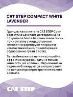 Гранулы наполнителя CAT STEP Compact White Lavender изготовлены из природной белой бентонитовой глины: при контакте с жидкостью они мгновенно формируют твердые и компактные комки, предотвращая образование грязи в лотке.