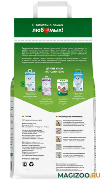 Наполнитель изготовлен по особой технологии из экологически чистой сосны. Прессованные древесные гранулы прекрасно впитывают влагу и удерживают неприятные запахи.