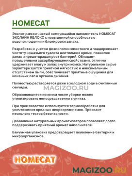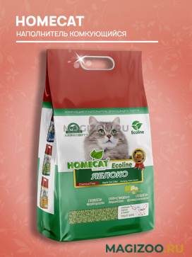 Экологически чистый комкующийся наполнитель HOMECAT ЭКОЛАЙН ЯБЛОКО с повышенной способностью водопоглощения и блокировки запаха.