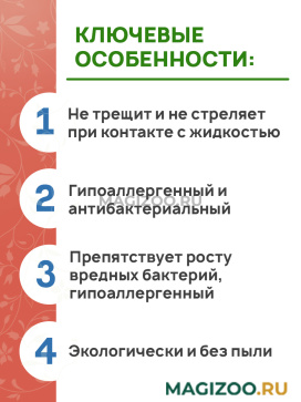 - Препятствует росту вредных бактерий, гипоаллергенный.