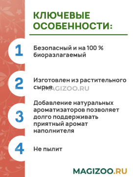 - Добавление натуральных ароматизаторов позволяет долго поддерживать приятный аромат наполнителя.