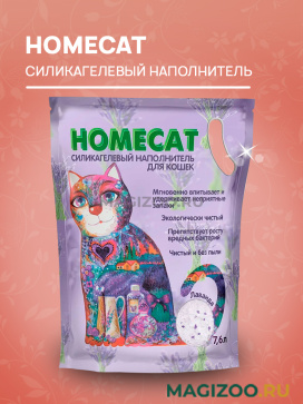 Силикагелевый наполнитель HOMECAT ЛАВАНДА современного поколения с нежным, легким ароматом лаванды для Вашего питомца.