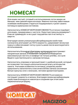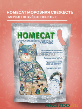 Силикагелевый наполнитель HOMECAT МОРОЗНАЯ СВЕЖЕСТЬ современного поколения с нежным, легким ароматом морозной свежести для Вашего питомца.