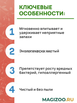Экономичен в использовании, не требует ежедневной смены. Можно использовать в кошачьих лотках с решеткой.