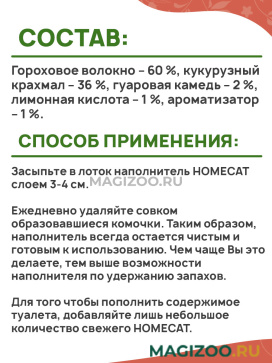 Торговая марка HOMECAT отечественного производства выпускает наполнители для кошачьего туалета разных типов: от впитывающих до комкующихся, от древесных до бентонитовых. Производитель заявляет, что HOMECAT – это серия высококачественных наполнителей с 100 % натуральным составом, эко упаковка, экономия расхода, отсутствие запахов и комфортная цена.