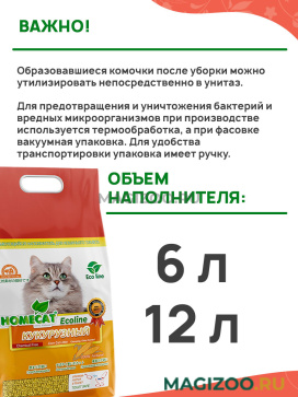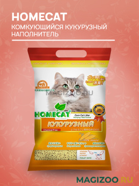 Экологически чистый комкующийся наполнитель HOMECAT ЭКОЛАЙН КУКУРУЗНЫЙ с повышенной способностью водопоглощения и блокировки запаха.