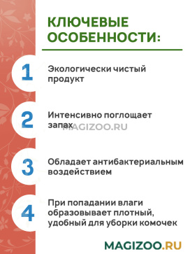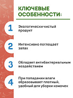 - При попадании влаги образовывает плотный, удобный для уборки комочек.
