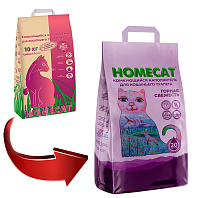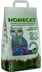 Торговая марка HOMECAT отечественного производства выпускает наполнители для кошачьего туалета разных типов: от впитывающих до комкующихся, от древесных до бентонитовых. Производитель заявляет, что HOMECAT – это серия высококачественных наполнителей с 100 % натуральным составом, эко упаковка, экономия расхода, отсутствие запахов и комфортная цена.