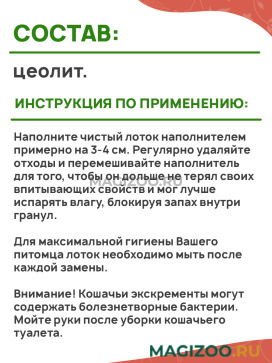 Наполните чистый лоток наполнителем примерно на 3-4 см. Регулярно удаляйте отходы и перемешивайте наполнитель для того, чтобы он дольше не терял своих впитывающих свойств и мог лучше испарять влагу, блокируя запах внутри гранул.