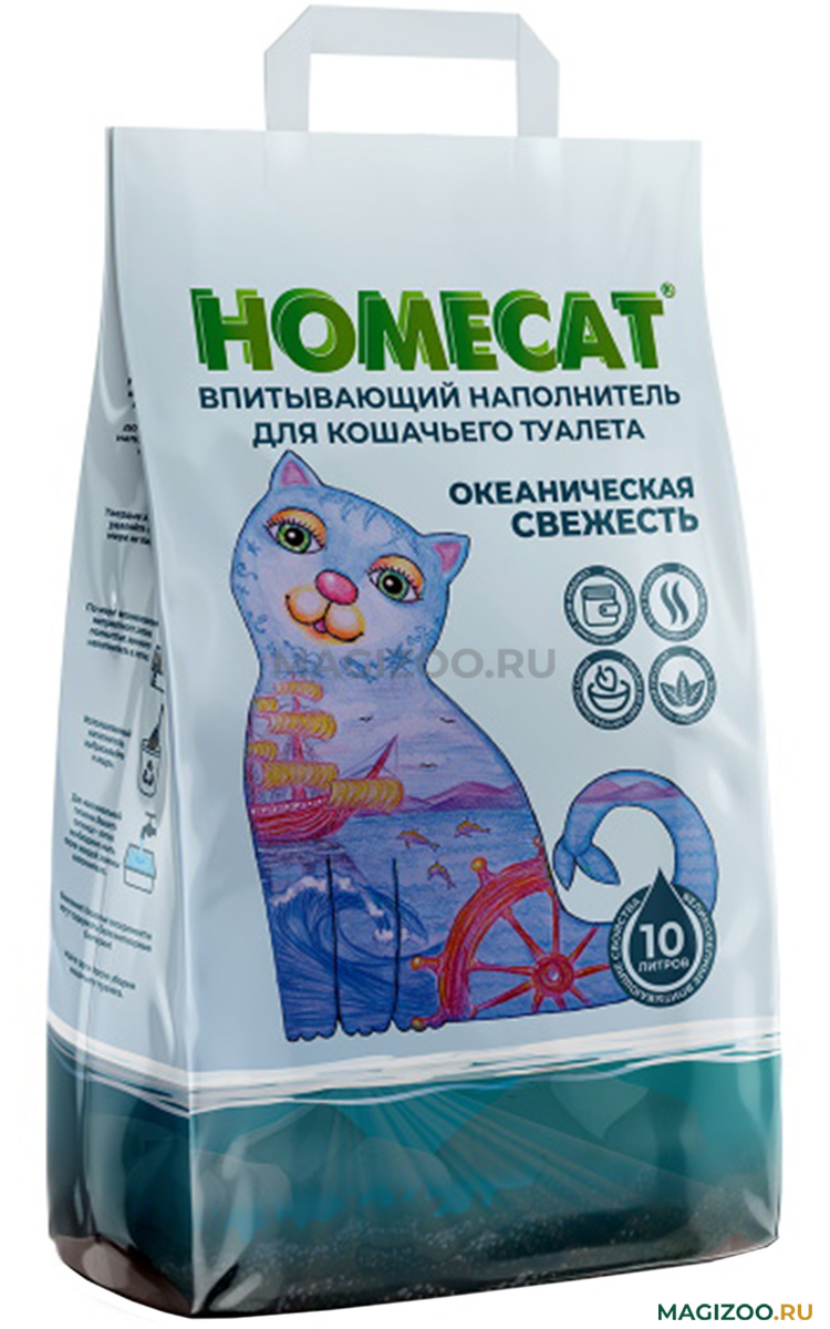 Впитывающий наполнитель для кошачьего туалета HOMECAT Океаническая свежесть.