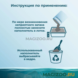 Наполните чистый лоток наполнителем примерно на 3-4 см. Регулярно удаляйте отходы и перемешивайте наполнитель для того, чтобы он дольше не терял своих впитывающих свойств и мог лучше испарять влагу, блокируя запах внутри гранул.