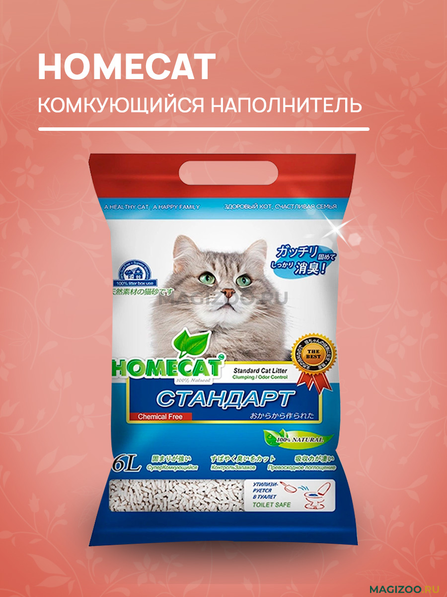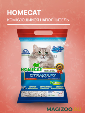 Экологически чистый комкующийся наполнитель HOMECAT ЭКОЛАЙН СТАНДАРТ с повышенной способностью водопоглощения и блокировки запаха.
