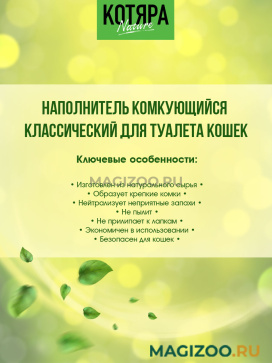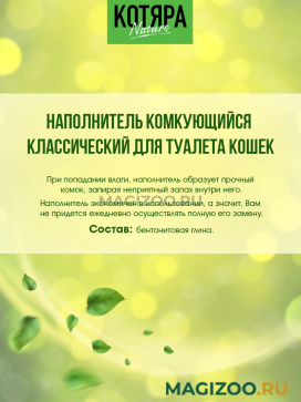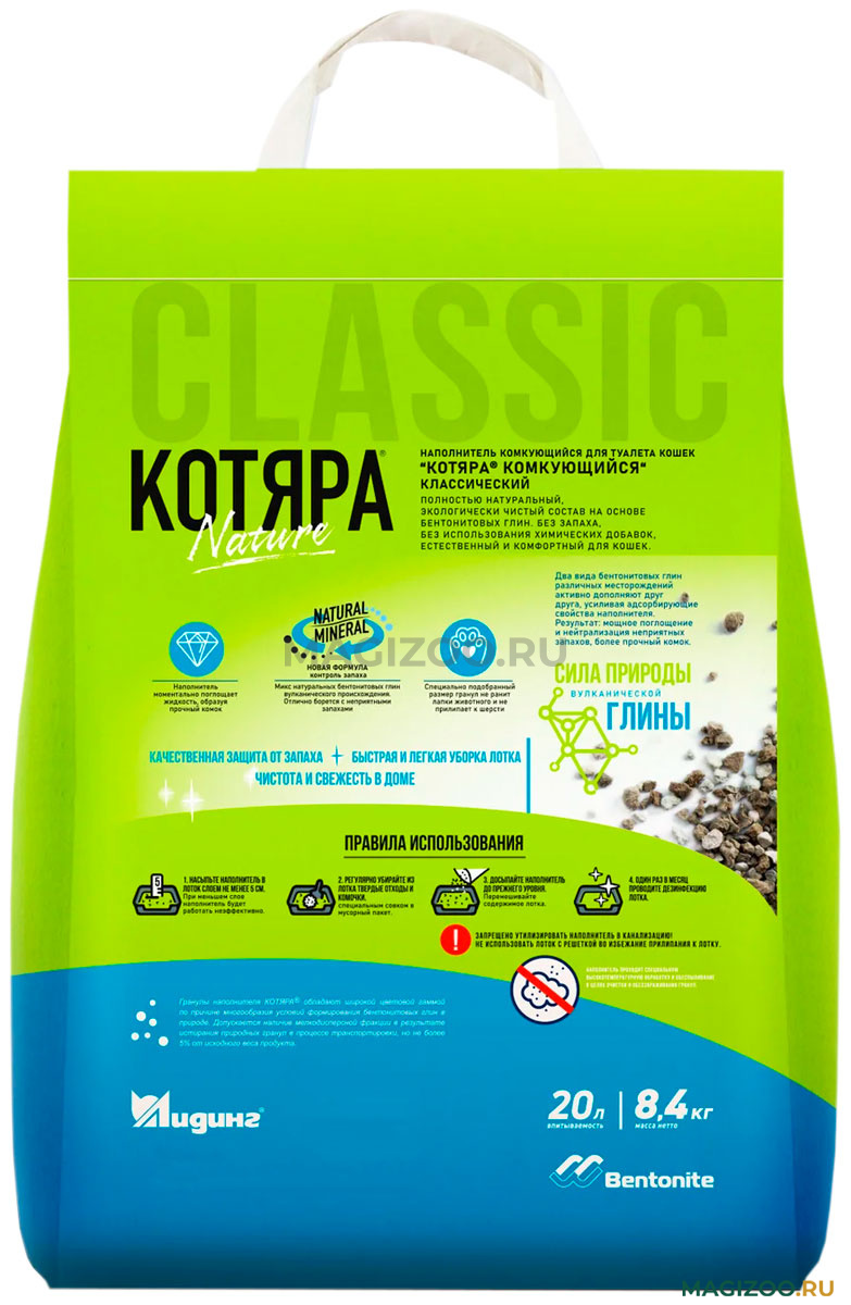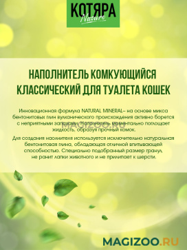 Комкующийся наполнитель КОТЯРА Классический с новой формулой NATURAL MINERAL полностью натуральный экологически чистый состав, естественный и комфортный для кошек.
