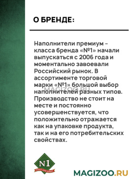 Наполнители премиум – класса бренда «№1» начали выпускаться с 2006 года и моментально завоевали Российский рынок. В ассортименте торговой марки «№1» большой выбор наполнителей разных типов. Производство не стоит на месте и постоянно усовершенствуется, что положительно отражается как на упаковке продукта, так и на его потребительских свойствах.