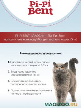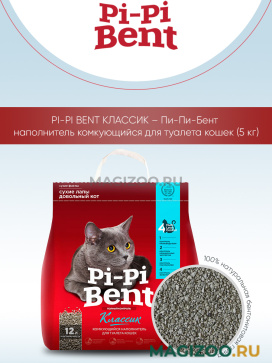 Pi-Pi Bent Classic впитывает большое количество влаги, образуя крепкие комки, что существенно экономит потребление наполнителя.