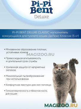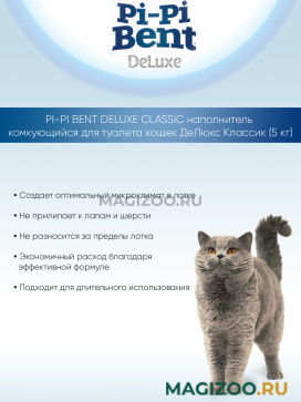 Классический наполнитель без отдушек PI-PI BENT DELUXE CLASSIC имеет небольшой размер гранул и понравится всем кошкам, предпочитающим мягкость и особый комфорт при посещении лотка.