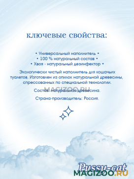 PUSSY-CAT ДРЕВЕСНЫЙ наполнитель древесный для туалета кошек (10 л)