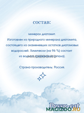 Назначение: Применяется как наполнитель для кошачьих туалетов и туалетов других домашних животных. Приятный запах моря освежает воздух вокруг туалета.