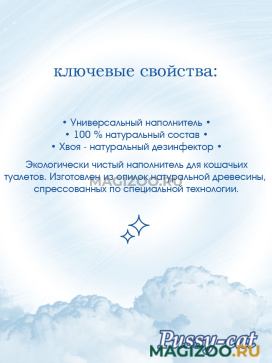 Экологически чистый наполнитель для кошачьих туалетов. Изготовлен из опилок натуральной древесины, спрессованных по специальной технологии.