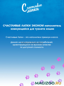 Информация о составе и ингредиентах, цветовом решении, технических и иных характеристиках, стране-изготовителе, внешнем виде и комплекте поставки товара носит справочный характер и основана на последних доступных к моменту публикации сведениях. Доставка данного товара осуществляется во все регионы РФ.В 2009 году впервые на рынке был представлен бренд СЧАСТЛИВЫЕ ЛАПКИ, который представлен двумя линейками в нескольких вариантах фасовки.